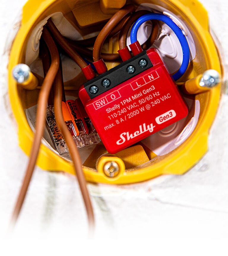 ​The smallest relay switch in the world for smart control and precise power monitoring. Automate your lights or small electrical appliances in less than 10 minutes, and control and monitor them from anywhere. Small enough to fit behind any wall switch or socket, Shelly 1PM Mini Gen3 is retrofit and highly compatible with your existing smart ecosystem.​