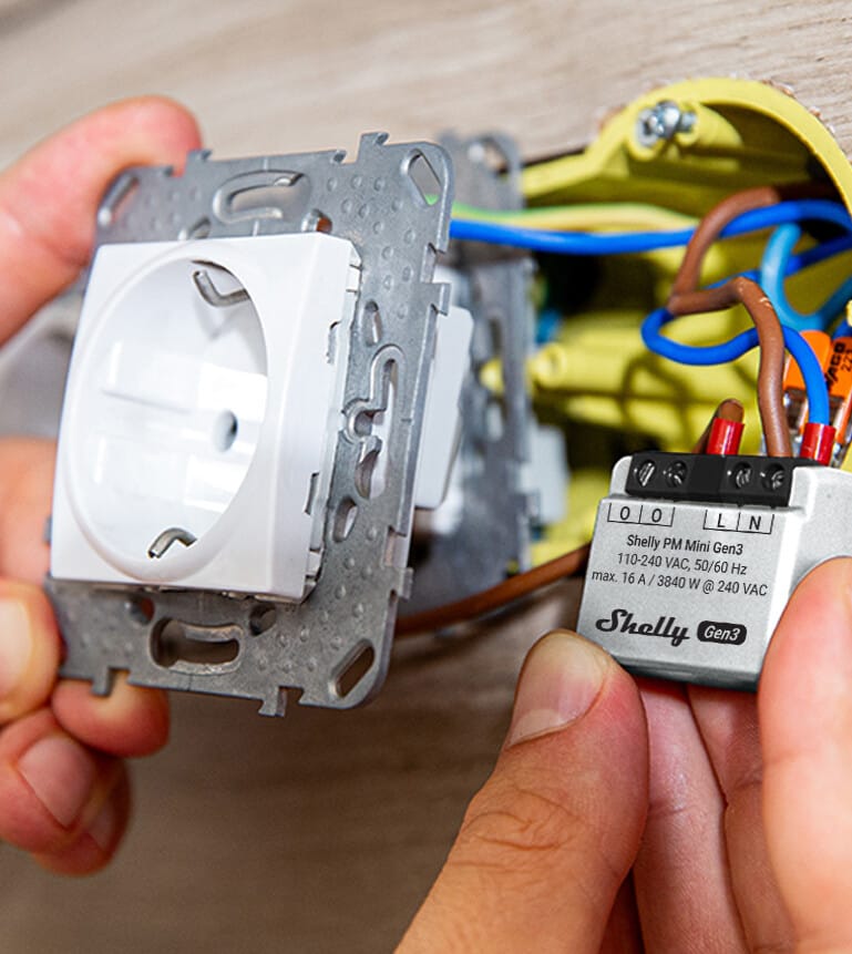 The smallest power meter in the world for precise power monitoring. Automate your lights or electrical appliances in less than 10 minutes and monitor their power consumption from anywhere. Small enough to fit behind any wall switch or socket, Shelly PM Mini Gen3 is retrofit and highly compatible with your existing smart ecosystem.