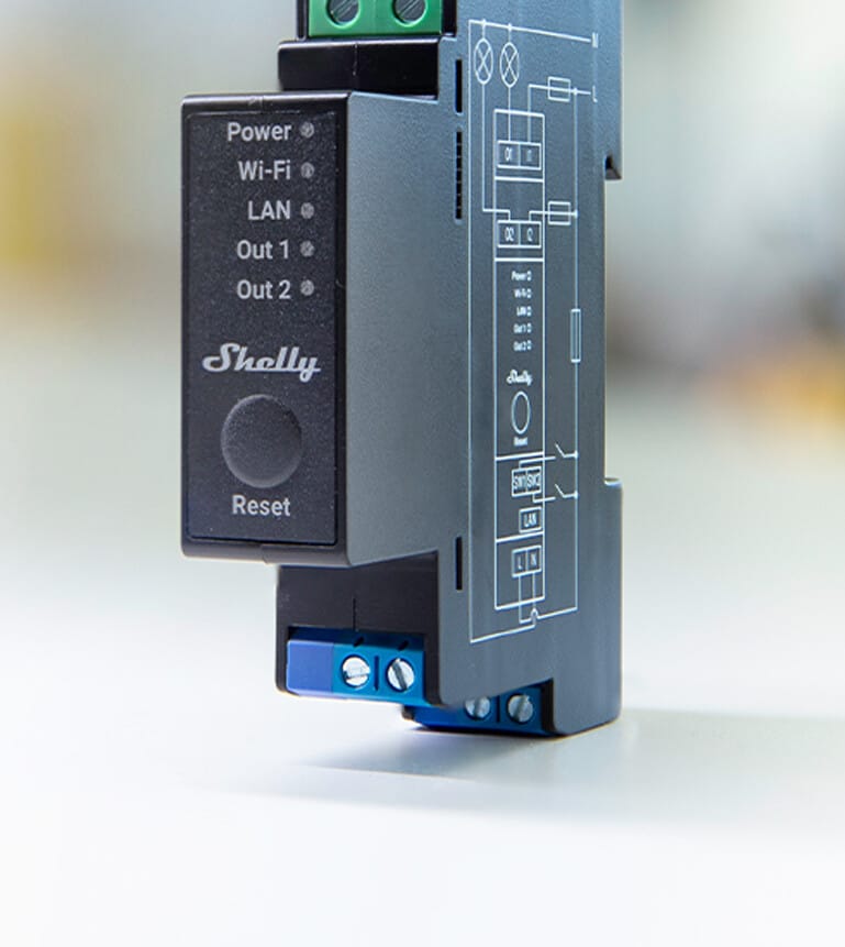 Professional 2-channel DIN rail smart switch with power metering & cover (roller shutter) control