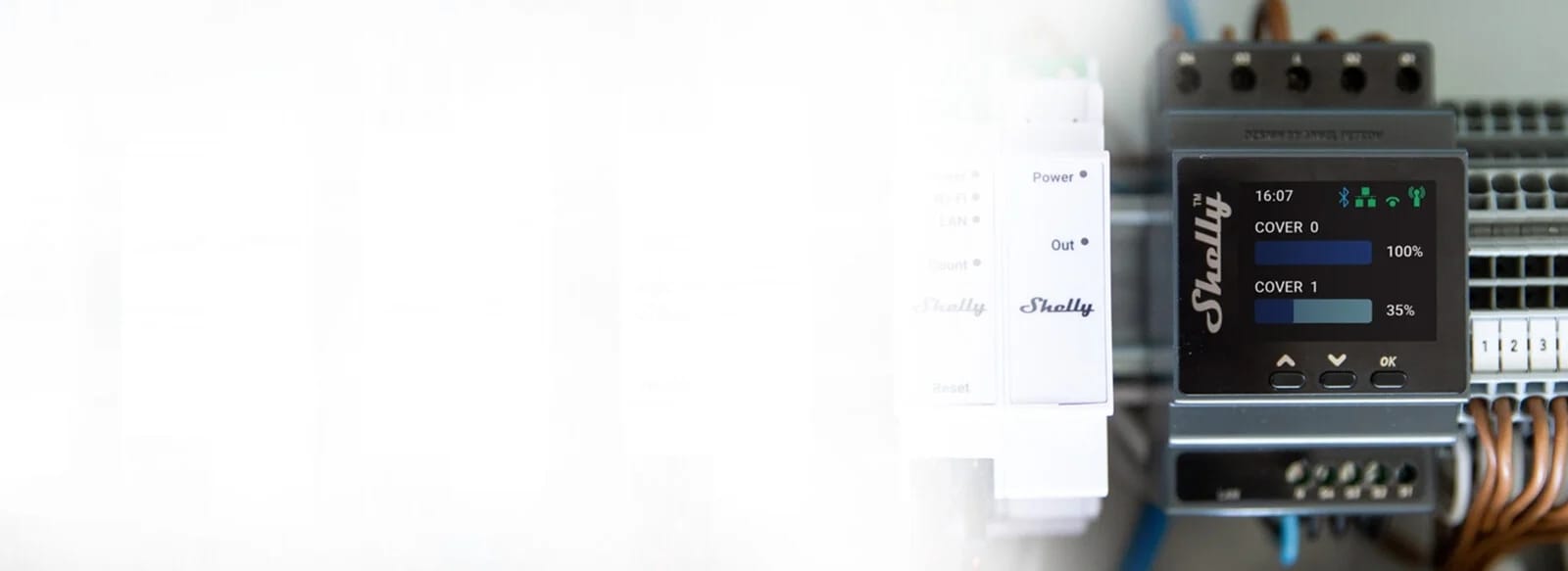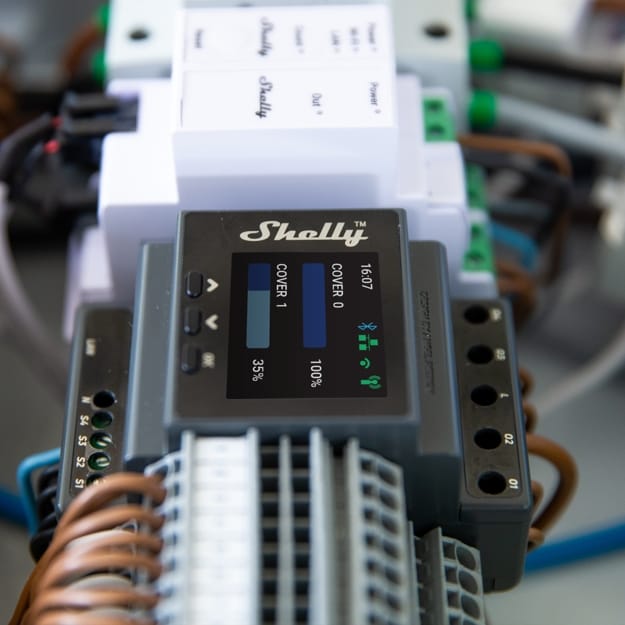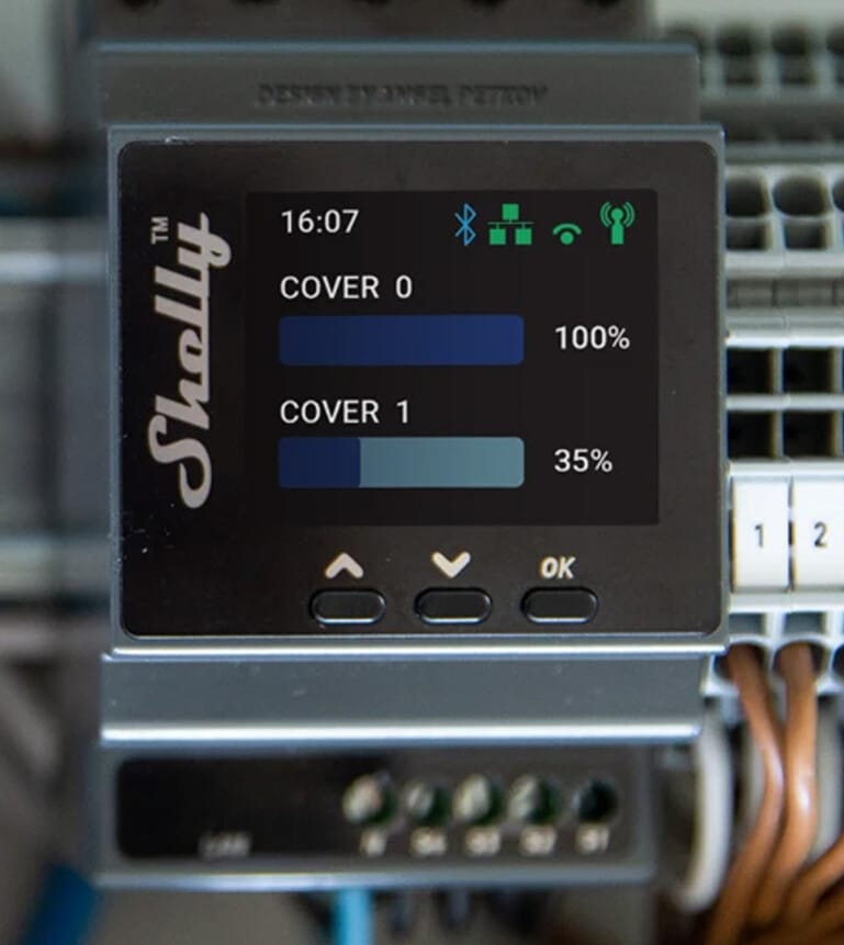 Professional DIN rail smart dual cover/shutter controller with power metering capabilities