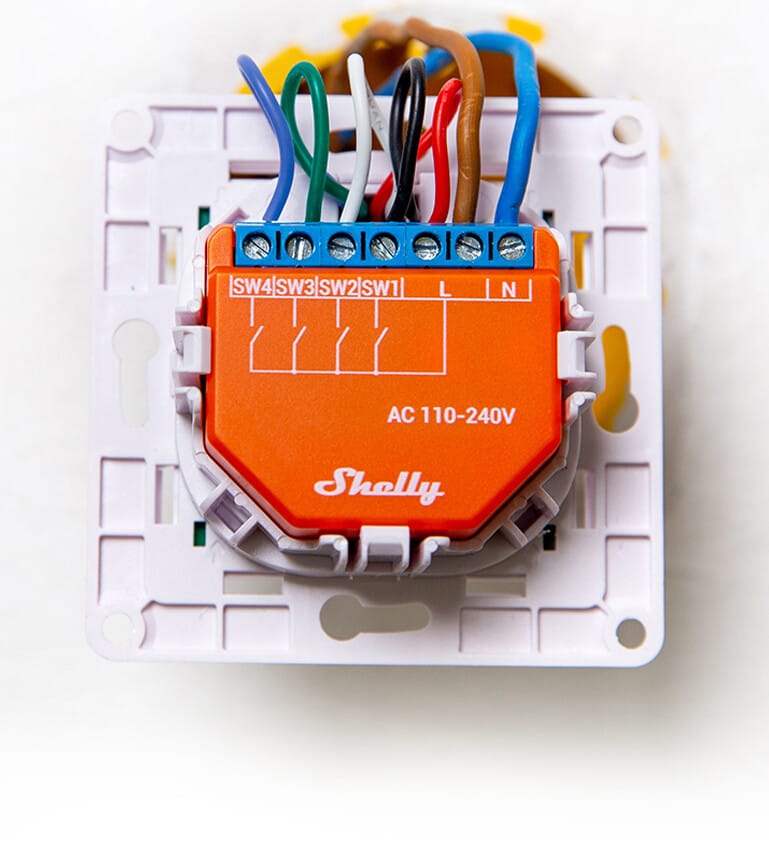 Shelly Plus i4 allows you to manually activate or deactivate any created scene, run synchronized actions, or execute complex trigger scenarios. Shelly Plus i4 is an input reader device (it does not contain relays).